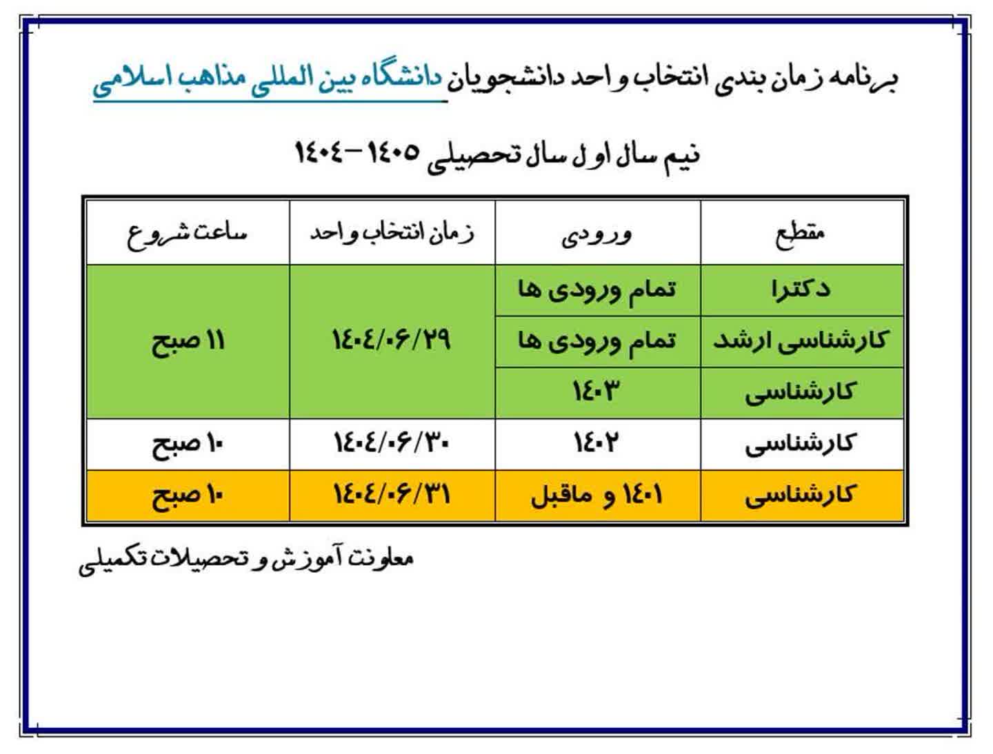 برنامه زمان بندی انتخاب واحد نیمسال اول سال تحصیلی ۱۴۰۴-۱۴۰۵ ۲۹ شهریور ۱۴۰۴ | ۱۴:۲۴ کد : ۵۹۴ اخبار و رویدادها تازه ترین اخبار تهران و شعب ارسال به دیگران نام شما ایمیل شما ایمیل دریافتکننده ارسال انصراف تعداد بازدید:۵۳۶